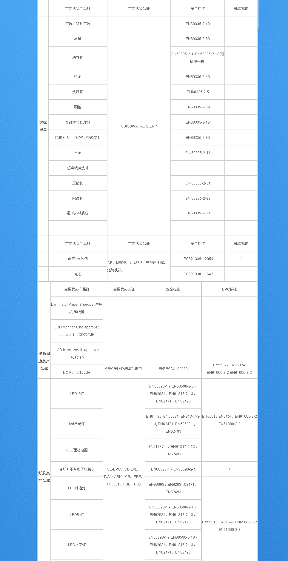 • TUV-E/e-Mark認(rèn)證:電子電器認(rèn)證 燈具認(rèn)證