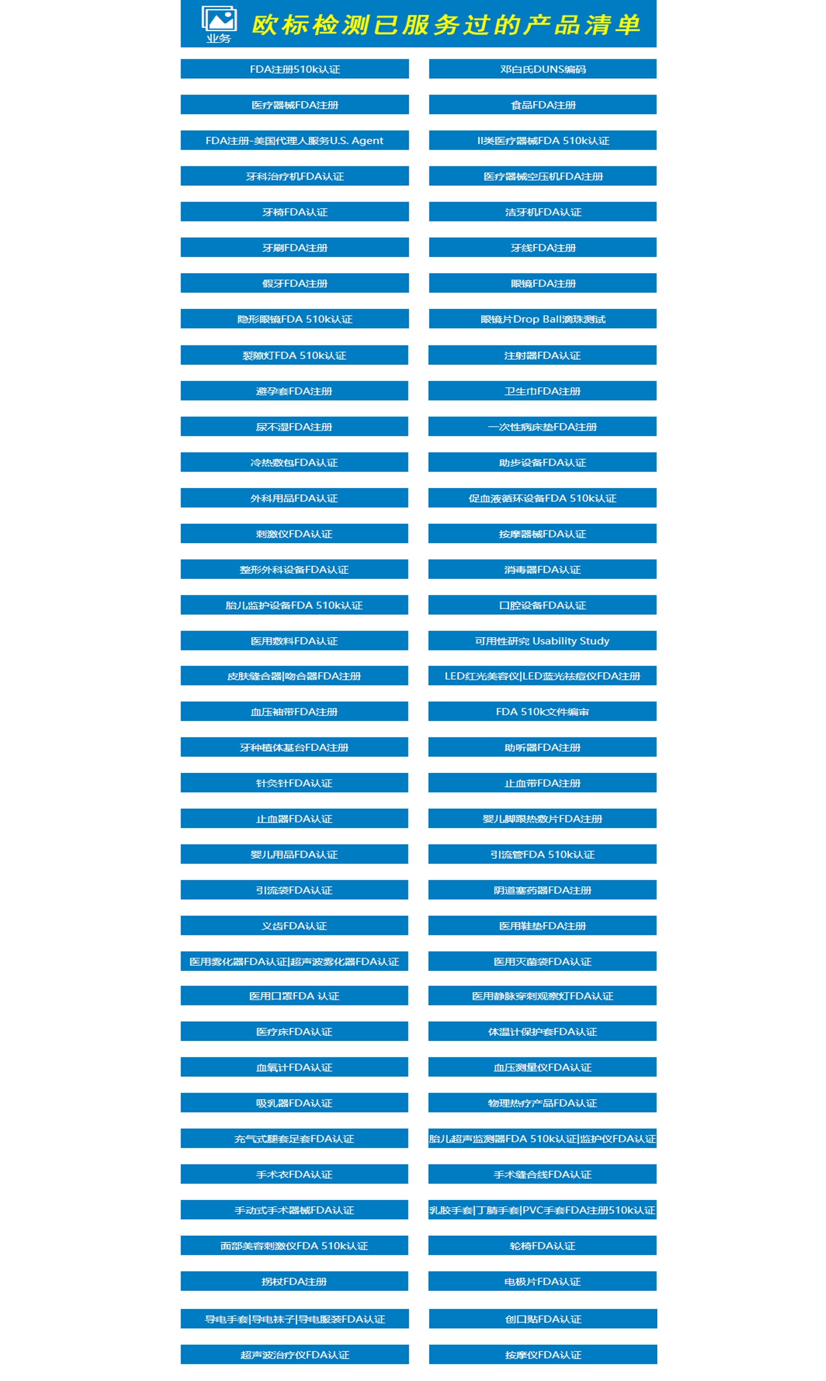 寧波歐標(biāo)檢測(cè) 美國(guó)FDA 服務(wù)中心,具備專業(yè)豐富的 FDA 服務(wù)經(jīng)驗(yàn)。協(xié)助眾多經(jīng)營(yíng)食品及接觸材料、藥品、海鮮、化妝護(hù)膚品、醫(yī)療器械等相關(guān)出口美國(guó)的企業(yè)成功將商品投入美國(guó)市場(chǎng),幫助企業(yè)及時(shí)解決各類產(chǎn)品被扣留、被拒絕的疑難問(wèn)題。協(xié)助企業(yè)遵守美國(guó)食品與藥品管理局(FDA)相關(guān)標(biāo)準(zhǔn),為企業(yè)提供已履行FDA注冊(cè)要求的手續(xù)。